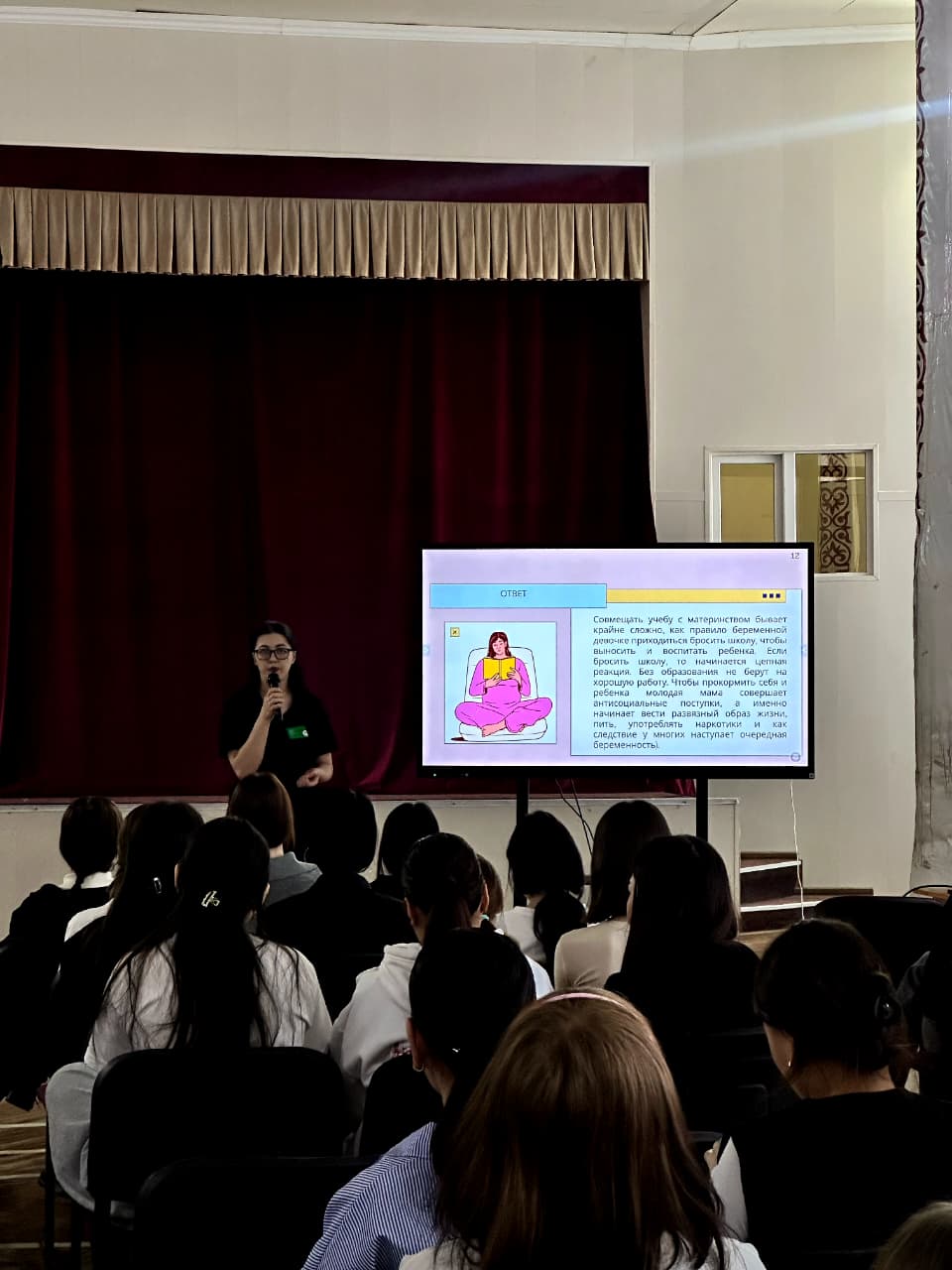 Кездесу барысында жасөспірімдер денсаулығы, ерте жүктіліктің алдын алу, жеке жауапкершілік пен саналы шешім қабылдаудың маңыздылығы туралы кеңінен айтылды. Студенттер өздерін толғандырған сұрақтарын қойып, пайдалы ақпарат алды.