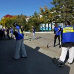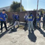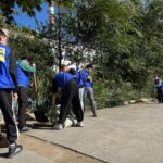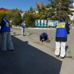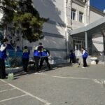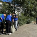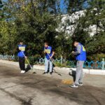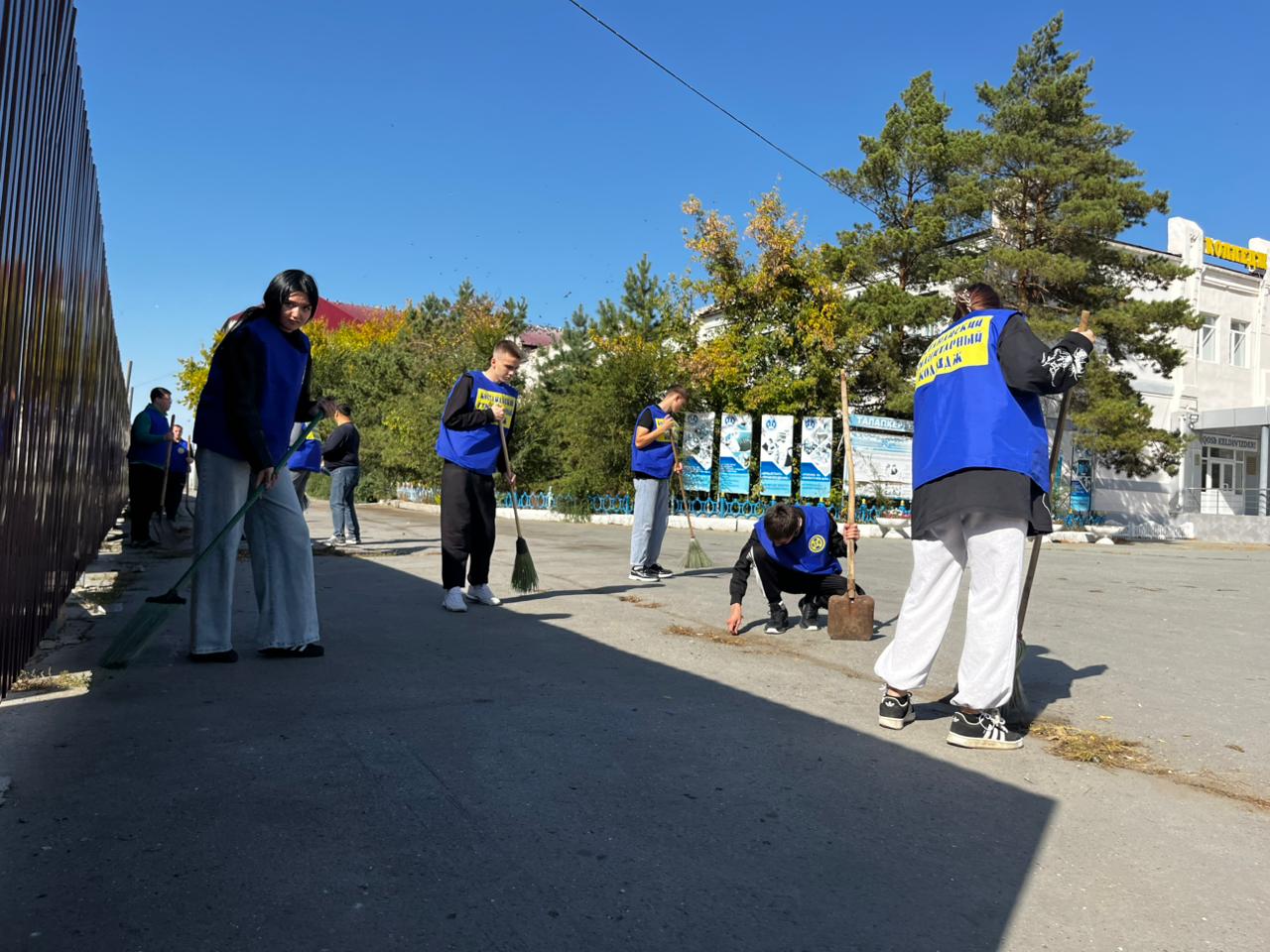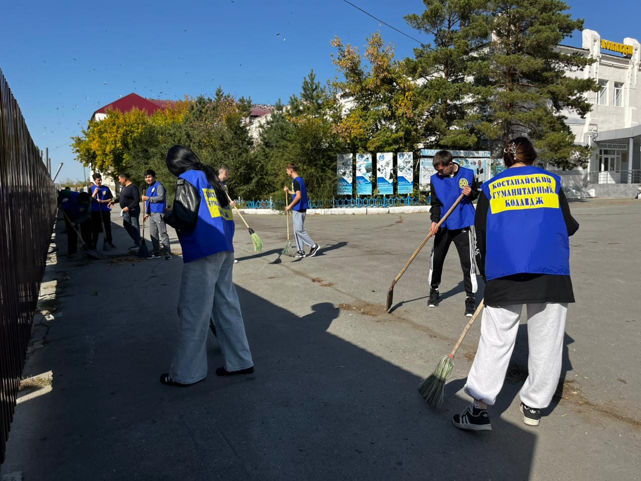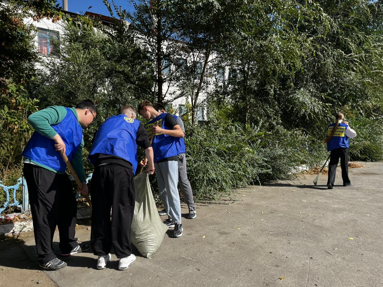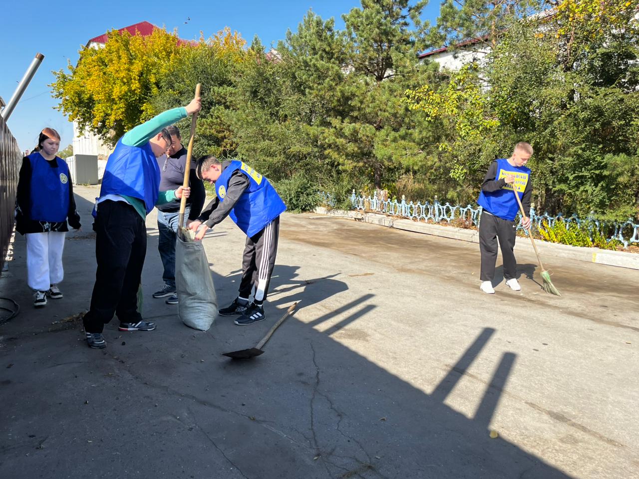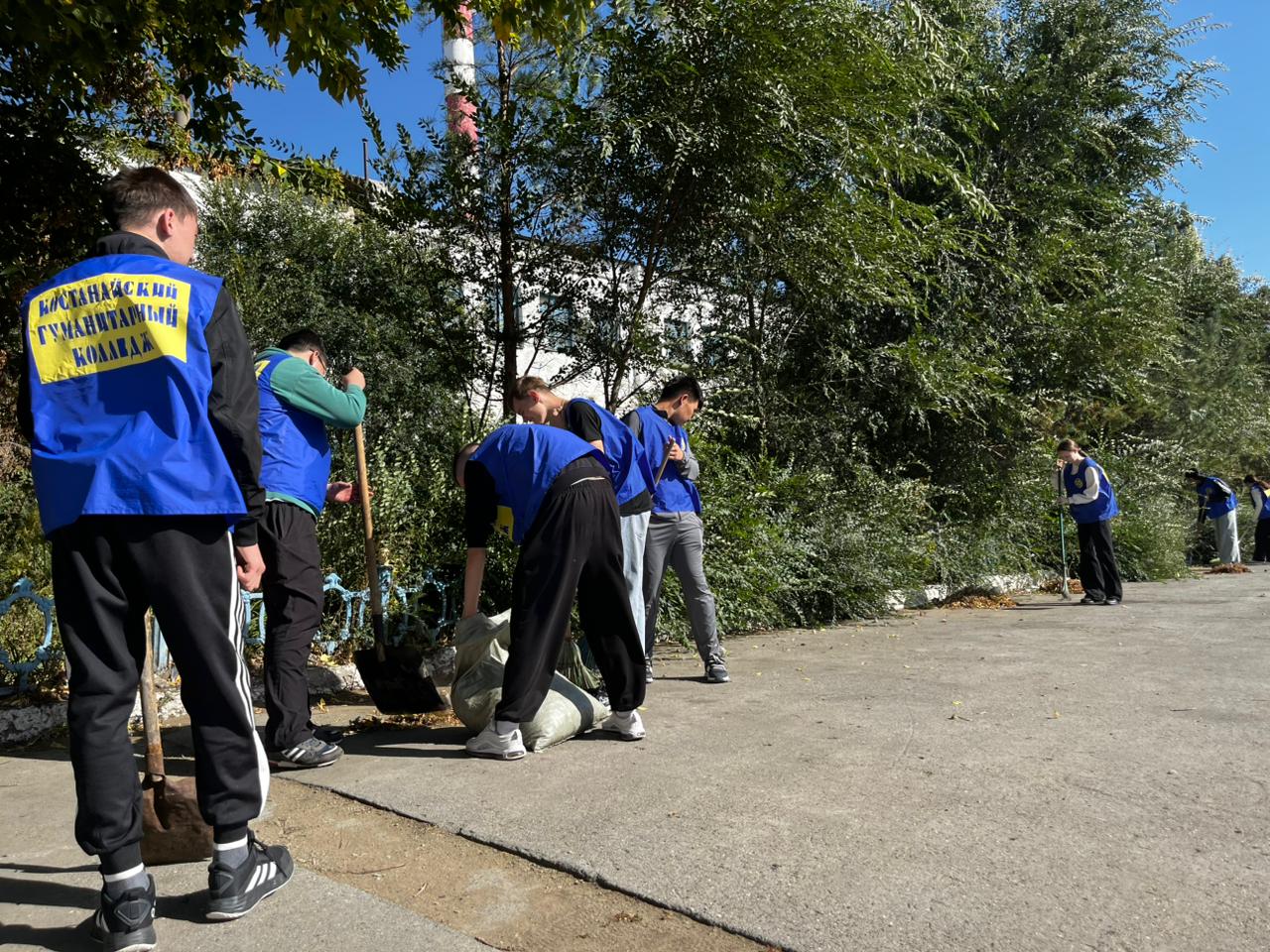 Студенты и преподаватели убирали территорию и собирали мусор.